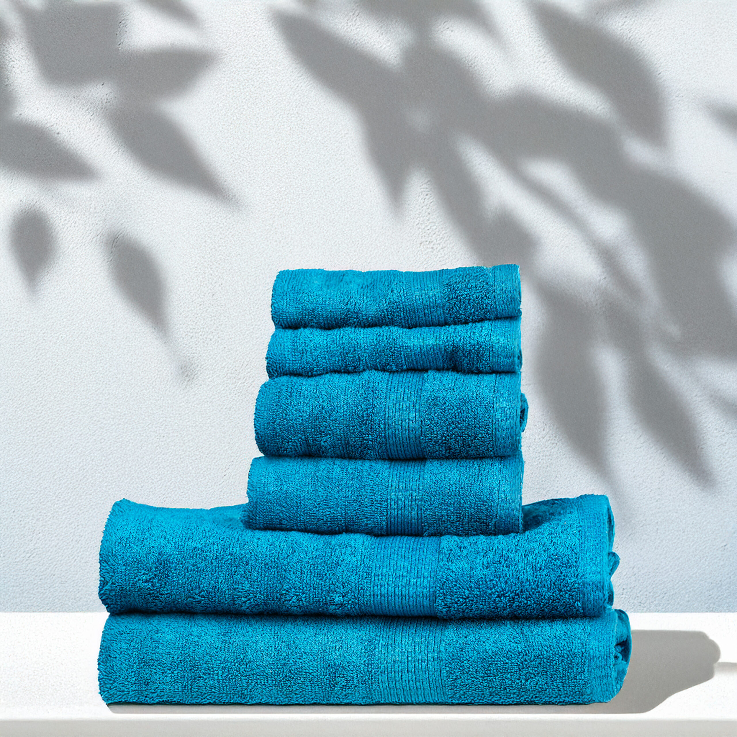 Set Options: Pack of 6 (2 Bath Towel, 2 Hand Towel, 2 Face Towel), Color: Teal